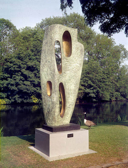 It’s called “Rock Form” (appropriately for this blog) and I love it. It has a steely grey/green pitted surface and again beautiful curves and spaces. I also love the metallic colouring of the inside of the holes. There were six castings made and here is another image of one of those castings from 1966. The photograph is from Battersea Park and the natural light really does it justice.