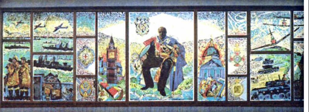 This painting reminded me in scale, if not content, of the stained glass mural in the Churchill Precinct in Dudley. I recall it casting light around the concrete confines of the precinct and whilst I wasn’t particularly fond of the imagery and it doesn’t touch me emotionally other than in a “memory lane” way, it did offer public art on a scale similar to the Ben Nicholson mural. It was designed by Edward Bainbridge Copnall.