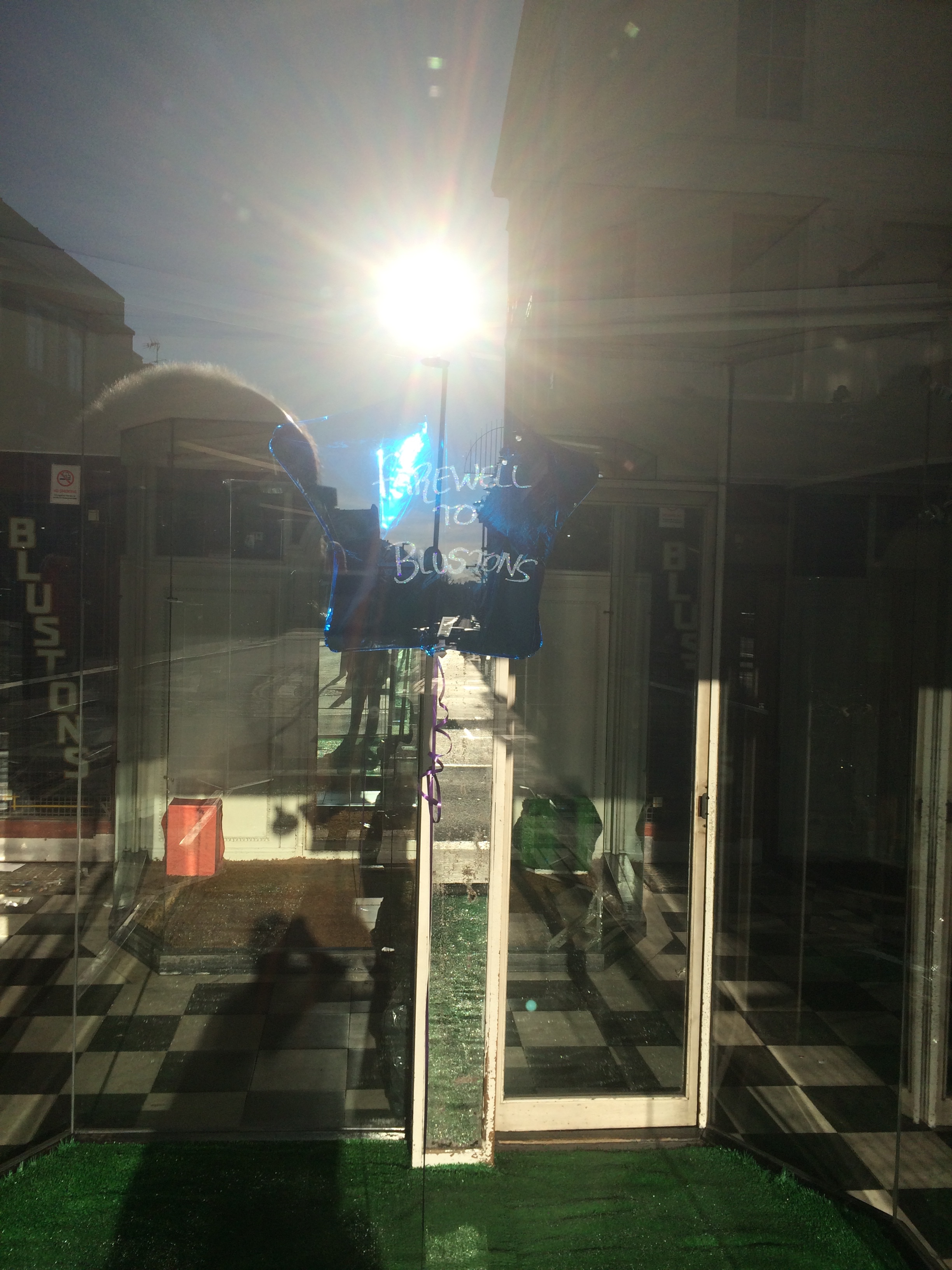 I walk to work most mornings past a shopfront in Kentish Town that stands out uniquely from the identikit frontages that clog up our shopping streets. The shop is (or more relevantly was) Blustons. Blustons was a clothes shop for “women of a certain age.” I know a little about women’s clothes shops as my mum ran a very successful shop in Wolverhampton in the West Midlands. One of the key requirements for clothes shops in particular and other shops in general is to move with the fashions whilst retaining a core customer base. Judging by the window displays, Blustons singularly failed to do this and recently paid the price. The premises are in a prime location on a main thoroughfare into central London from the north and the characterful frontage has tons of potential. The frontage is Grade II listed so hopefully it will be preserved. It survived World War II and the shop even had the shrapnel that almost took it out on proud display.