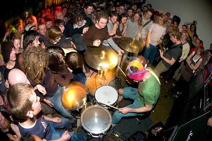 The drummer, Brian Chippendale handles vocals via a microphone tucked into a wrestler’s mask which he dons on stage. Everything is heavily distorted but beneath the distortion is incredible musicianship. The drumming is hugely influenced by the classic jazz drummers such as Elvin Jones, Art Blakey and Tony Wiliams. The drum kit is set low and he sits upright. I would love to see him play acoustic jazz – I bet he would be mesmerising. They inspire fanatical support with much moshing and crowd surfing. I still think they are a band that I wouldn’t listen to at home, but live they are really a unique experience.