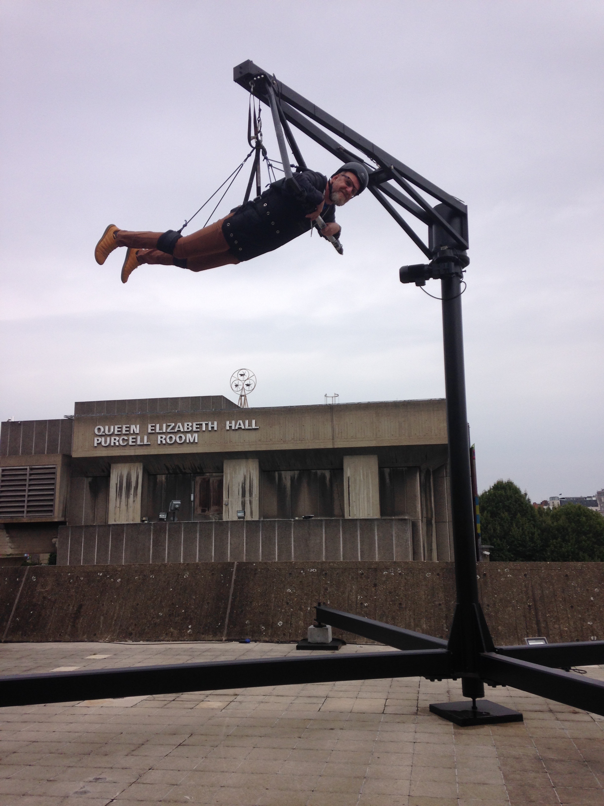 Taking the staff at their word regarding beating the queues, we went through the entrance ducts and straight up to the roof terrace overlooking to Waterloo Bridge and the National Theatre to try out the “Two Flying Machines”. These were heavily oversubscribed last time around with lengthy queues, so we pleased when we were the first two people on the terrace.