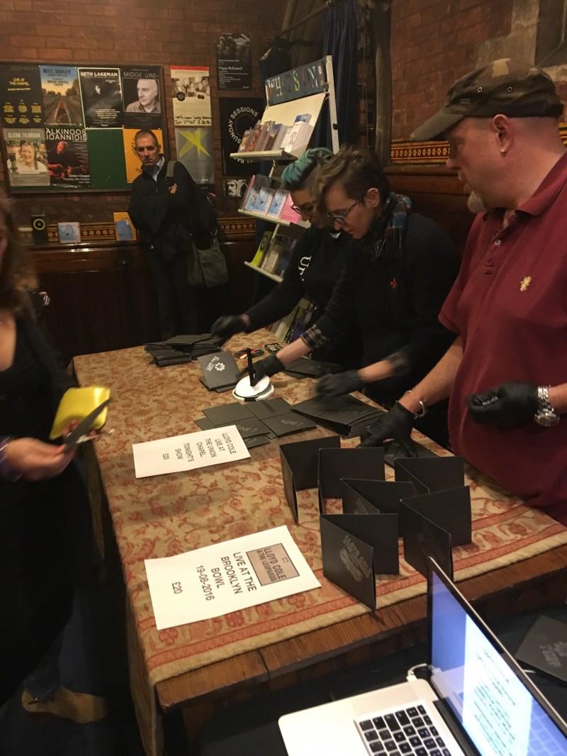 The second shout out goes to the merchandise stand – it was empty, except for one item. The only thing for sale was a £20 token to collect a double limited (120 copies) pressing of a live CD of the evening’s performance to take home with you.