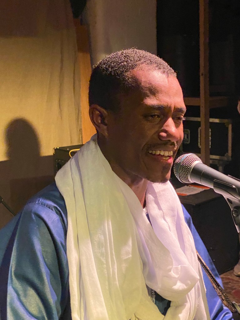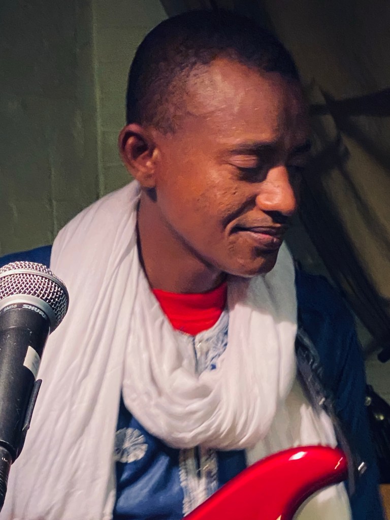They’ve followed this with this year’s Agadez, a homage to their home city. It is recorded at their home on a mobile recording studio. The album benefits from the more modern technology and also sounds like it draws on wider influences from other African countries and ethnicities – blues from Mali, Soukous music from Congo and Hausa bar bands. The guys often wear traditional Hausa alashos when they perform, a long turban that wraps around the head and neck. They didn’t wear them at Cafe Oto (probably due to just jumping out of a van 10 minutes before they kicked off the gig) but as they’re traditionally worn for ceremonies and rites of passage, the band are often seen in them (such as at Leeds a couple of nights later).