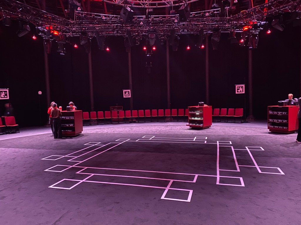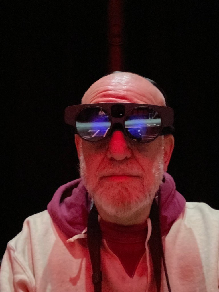 The visual aspect is the revolutionary part. It’s a Saturday night, and about forty of us are led through an eerily quiet London Roundhouse into the central circular performance space. There are about a hundred chairs around the perimeter. We’re handed some headsets, kind of uber spectacles with vision correction for those with a prescription.
