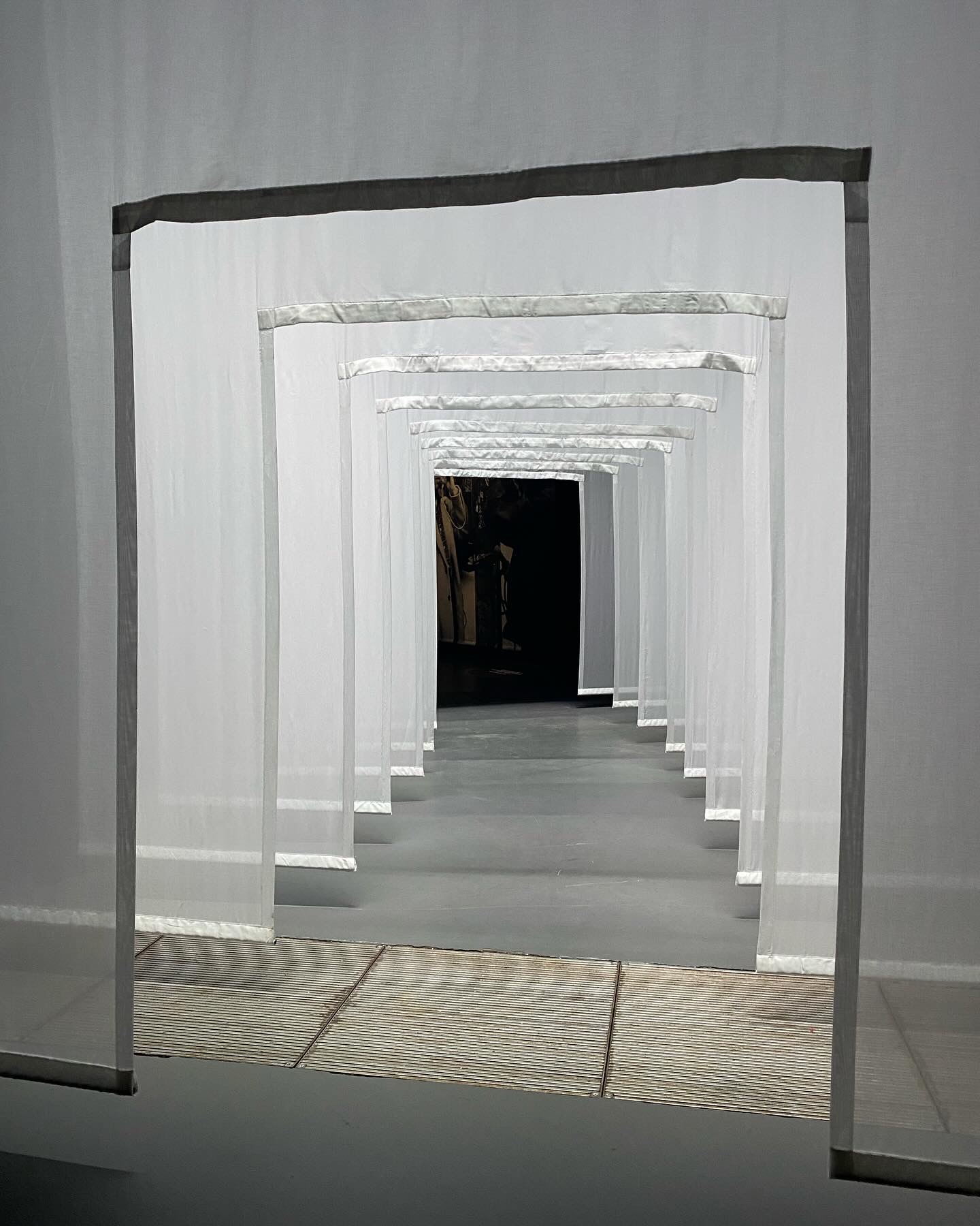 As the song plays, soft white clouds cluster on the floor, billowing gently. Most of us stay seated for this first song, taking in the surroundings, adjusting to the technology and probably displaying a little British reticence of being the first people to get more immersive.