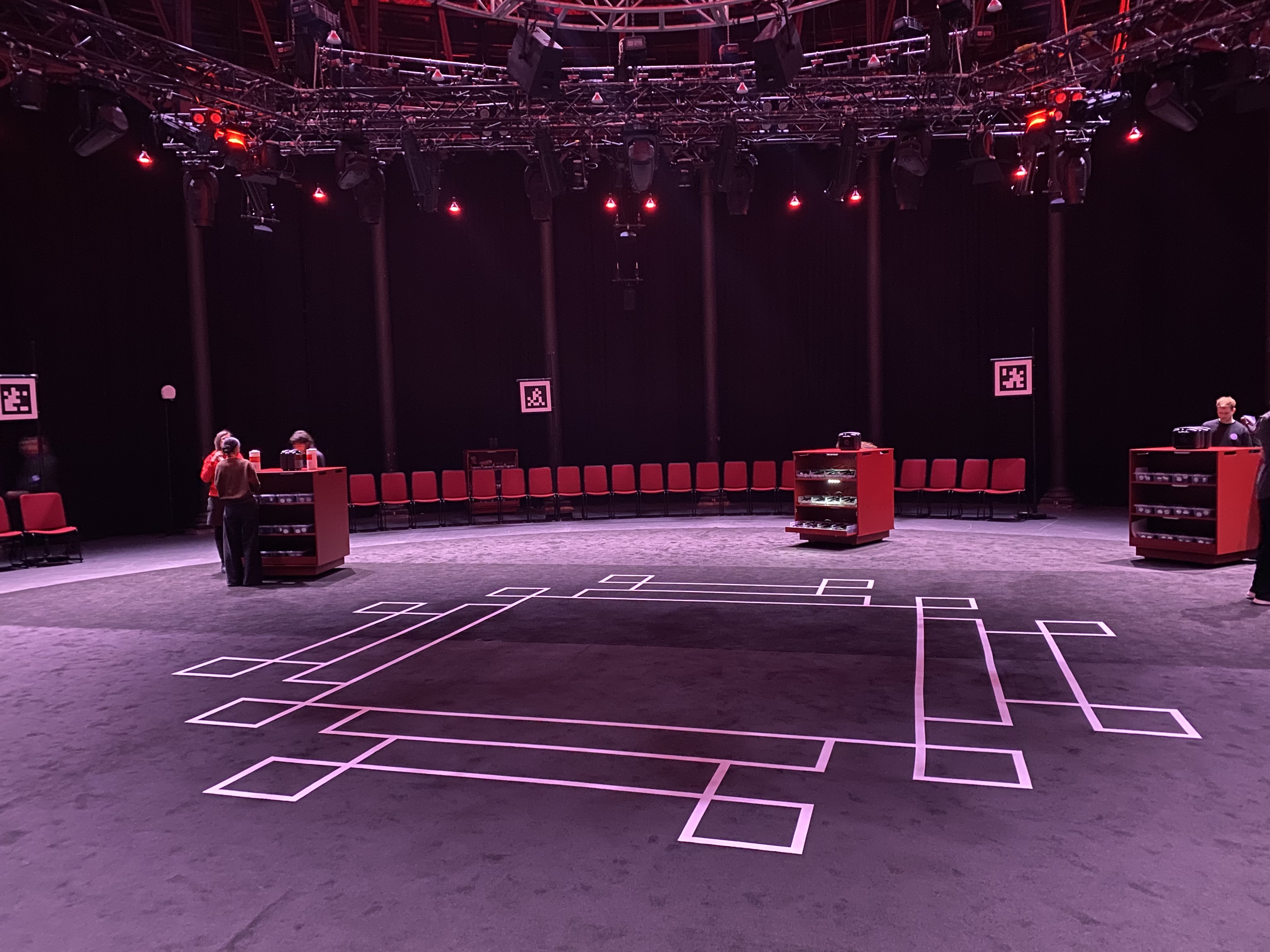 The visual aspect is the revolutionary part. It’s a Saturday night, and about forty of us are led through an eerily quiet London Roundhouse into the central circular performance space. There are about a hundred chairs around the perimeter. We’re handed some headsets, kind of uber spectacles with vision correction for those with a prescription.